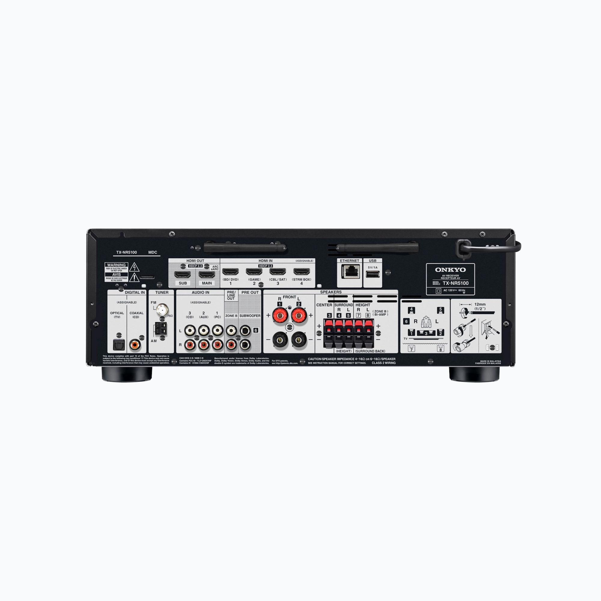 The Onkyo TX-NR5100 is a premium 7.2-channel AV receiver built for immersive, connected home theater experiences. With Dolby Atmos, 8K HDMI support, Bluetooth aptX, and smart features like AirPlay 2, built-in Chromecast, Alexa, and Sonos compatibility, it delivers powerful cinematic sound with effortless modern control.