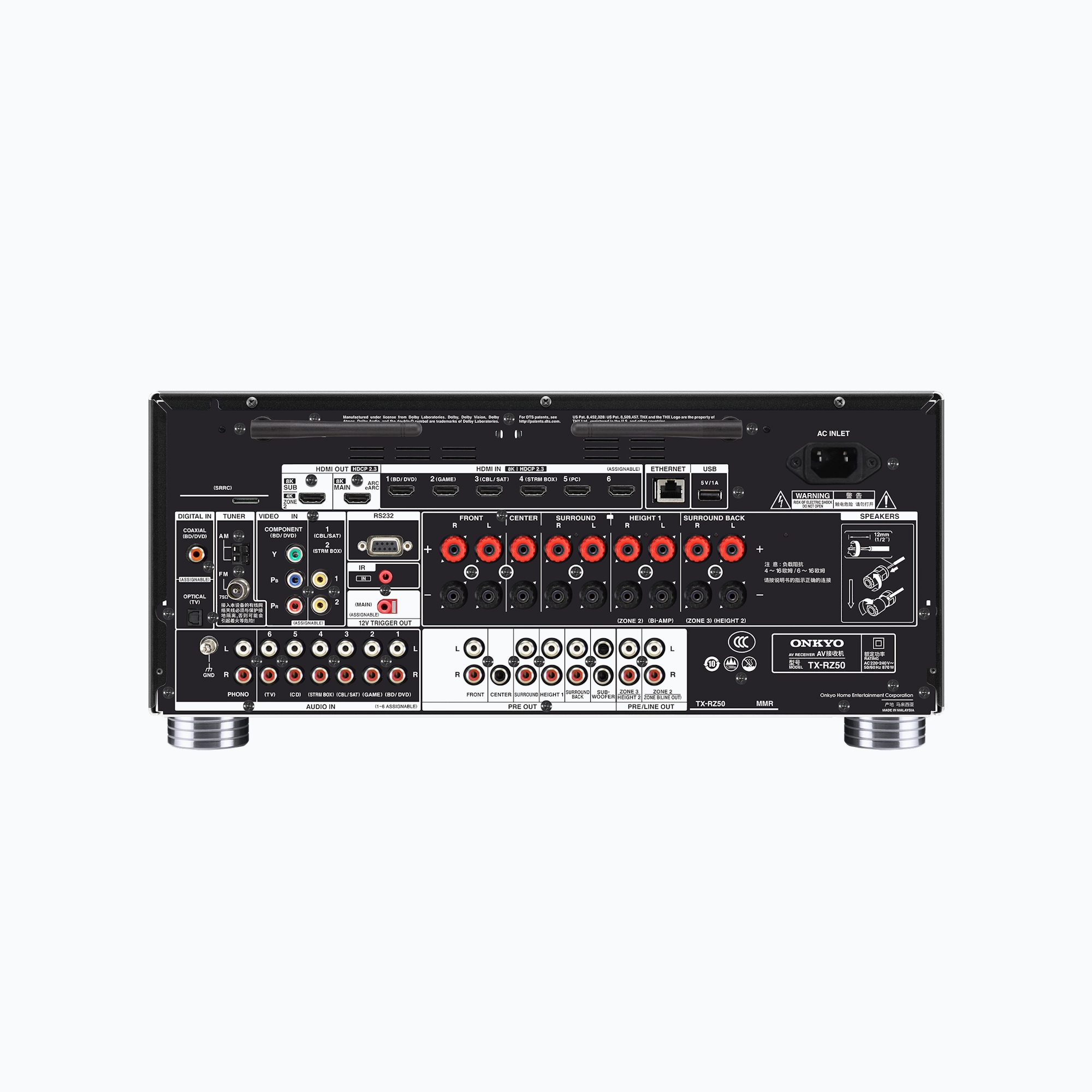 The Onkyo TX-RZ50 is a flagship 11-channel AV receiver engineered for reference-level home theater performance. Featuring Dirac Live room correction, Dolby Atmos, IMAX Enhanced, THX certification, and advanced 8K HDMI connectivity, it delivers uncompromising cinematic sound with powerful multi-zone control and seamless smart integration.