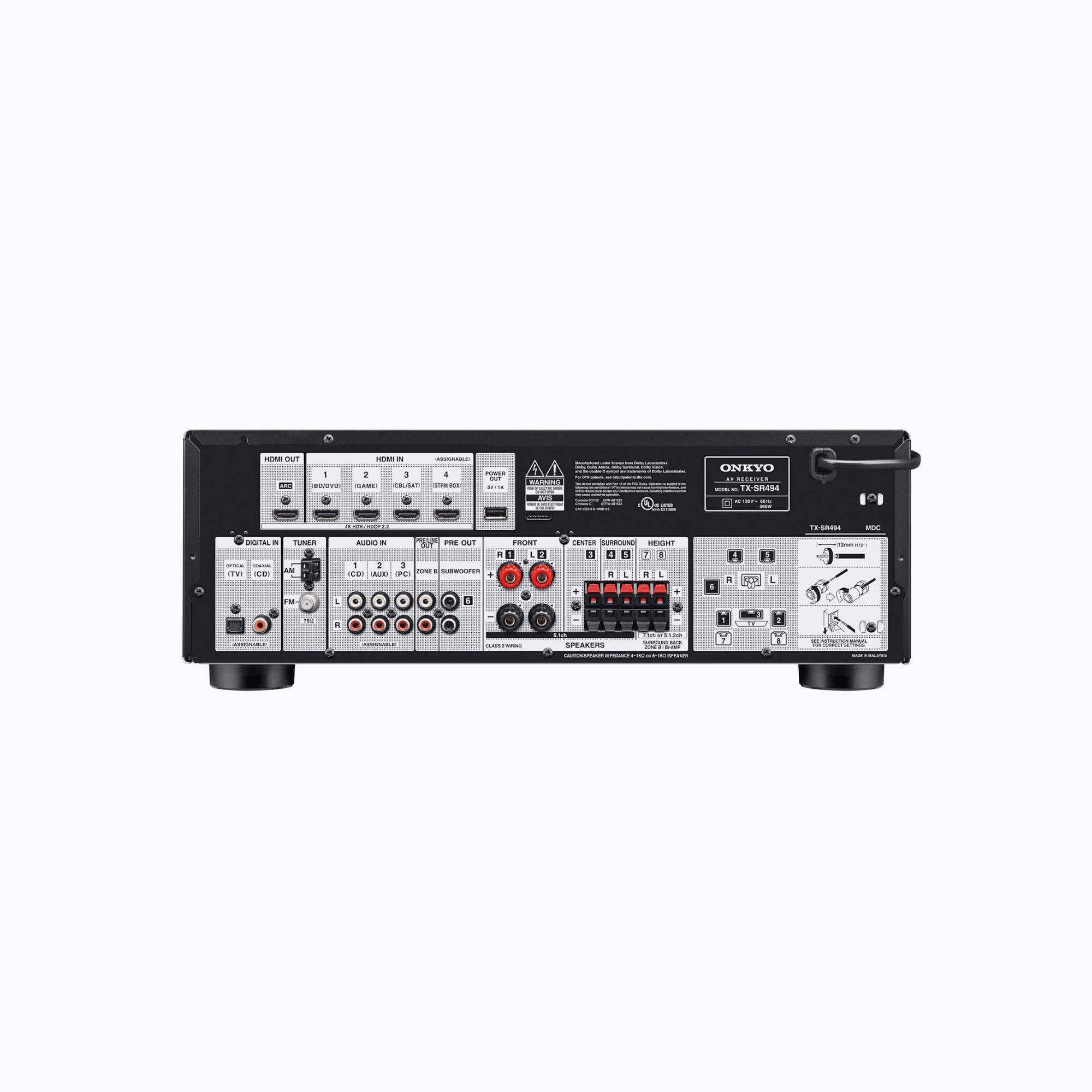 The Onkyo TX-SR494 is a premium 7.2-channel AV receiver engineered for powerful, immersive home theater performance. With Dolby Atmos, DTS:X, 4K HDMI support, and Bluetooth streaming, it delivers rich, cinematic surround sound with seamless modern connectivity.